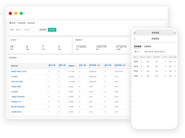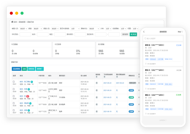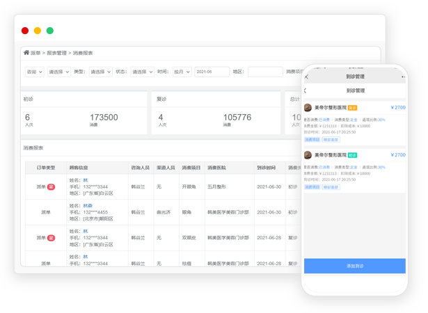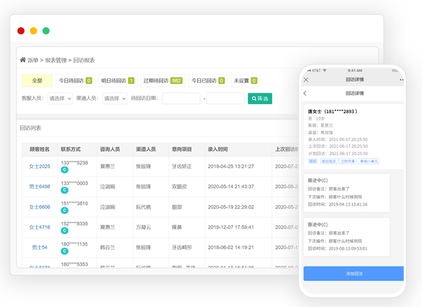 線索管理,跟進(jìn)顧客與消費備注,消費報表與對賬